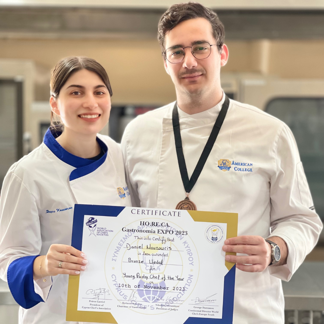 The American College Culinary Team participated in the Pan-Cyprian Culinary Competition at the HO.RE.CA Gastronomia Expo 2023, an event successfully organized by the Cyprus Chefs Association in collaboration with IMH.